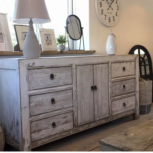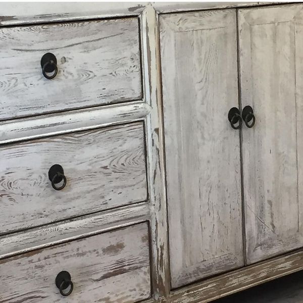 6 DRAWER 2 DOOR WHITEWASH CABINET Photo Gallery