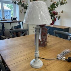 WOODEN GREY TABLE LAMP WITH CREAM SHADE Photo Gallery