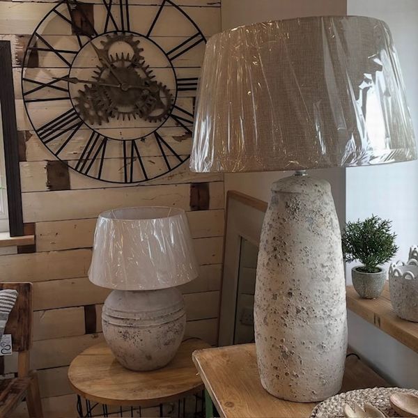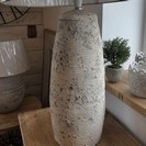 STONE EFFECT CERAMIC LAMP WITH LINEN SHADE